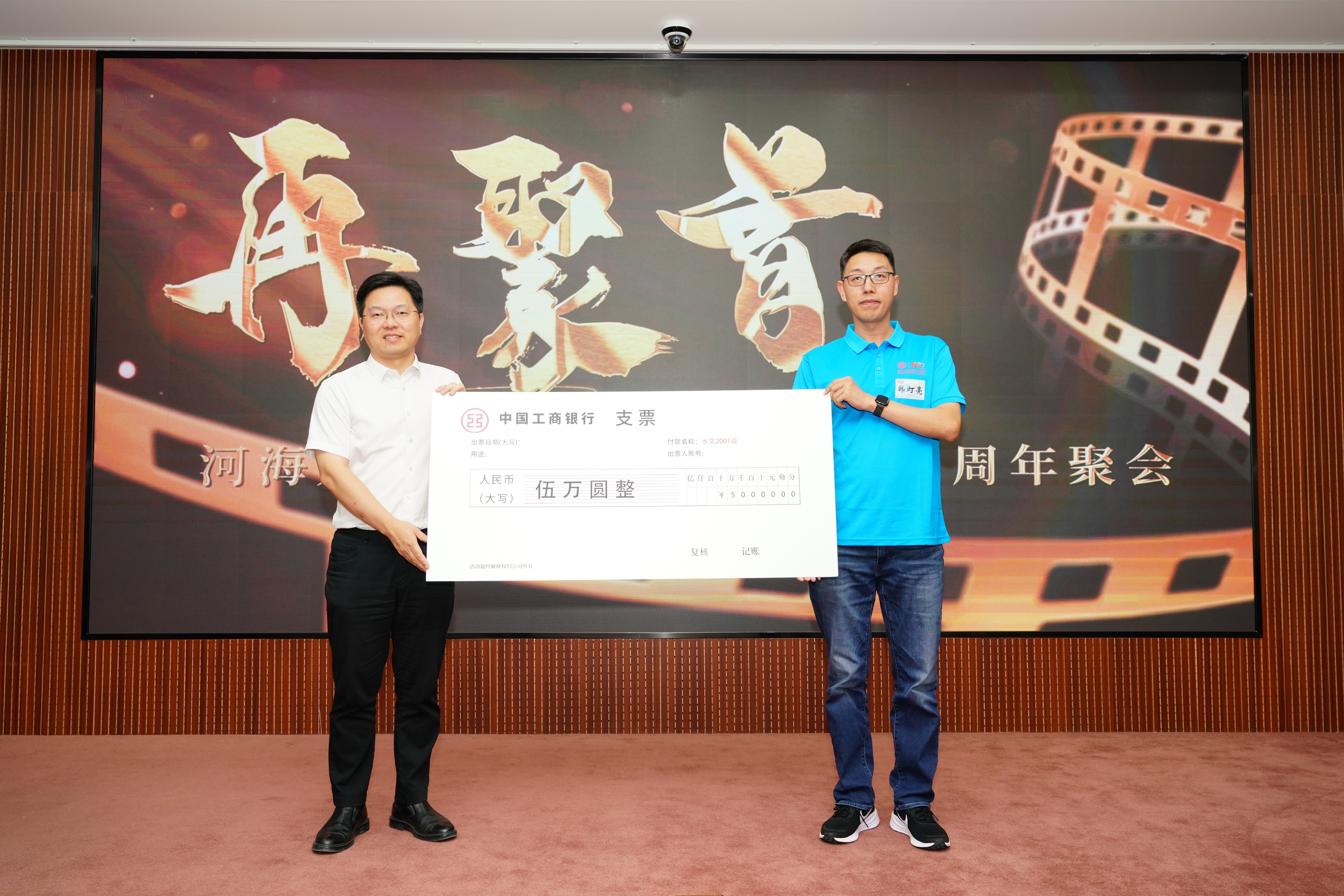江河万里,思源致远。座谈会后,水文2001级校友代表向刘光文水文科技教育基金捐款5万元,回馈母院培育,共盼光文精神薪火相传,为河海荣光再添亮色,为水文事业的明天共筑基石!